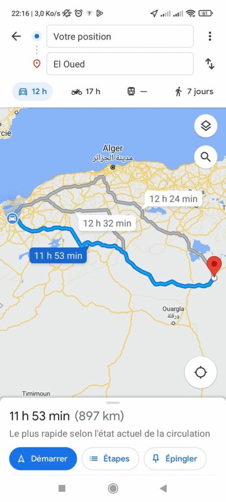 السلام عليكم ..اقترحوا عليا افضل طريق من سيدي بلعباس الى واد سوف من بين الطرق الثلاث علما أن : الطريق الاطول ..طريق مليح لانو شرق غرب و لكن بعيد ..و المخرج من الطريق السيار من البليدة. الطريق الثاني فيه شوية طريق سيار و نخرج منو بكري ..في غيليزان بالضبط و نكمل على الفيلاجات . الطريق…